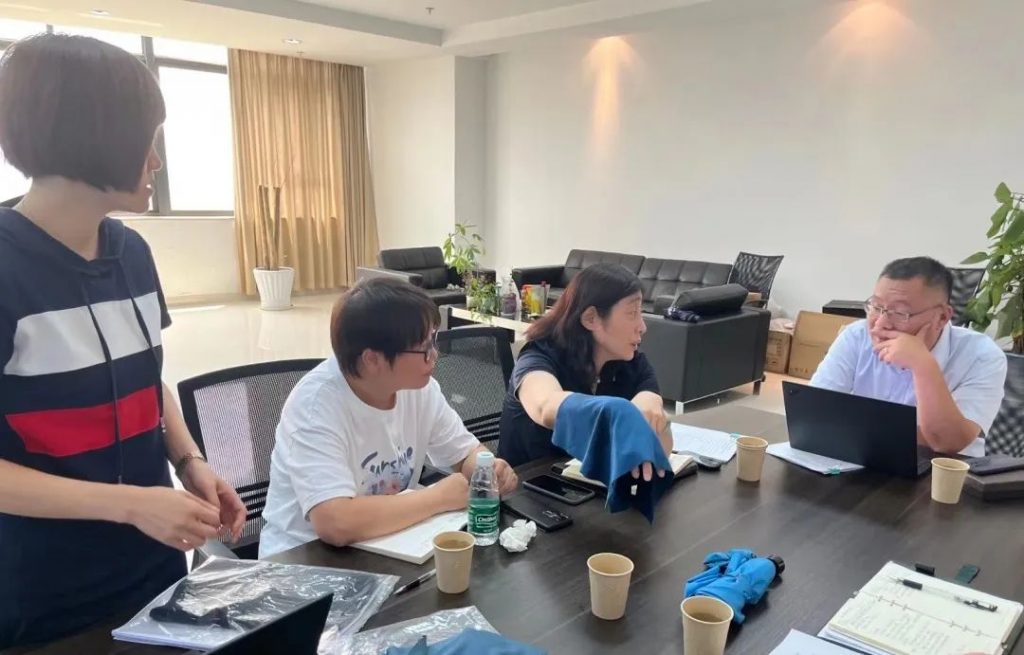The expert group exchanged and discussed the achievements of the project research and development, and personally felt and simply tested the multifunctional textile fabrics developed by the team of Qingdao University, which have excellent properties such as unidirectional moisture transmission, waterproof and moisture permeability, and antibacterial, and expressed affirmation and appreciation for their functional effects and future application prospects.