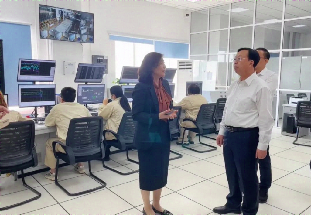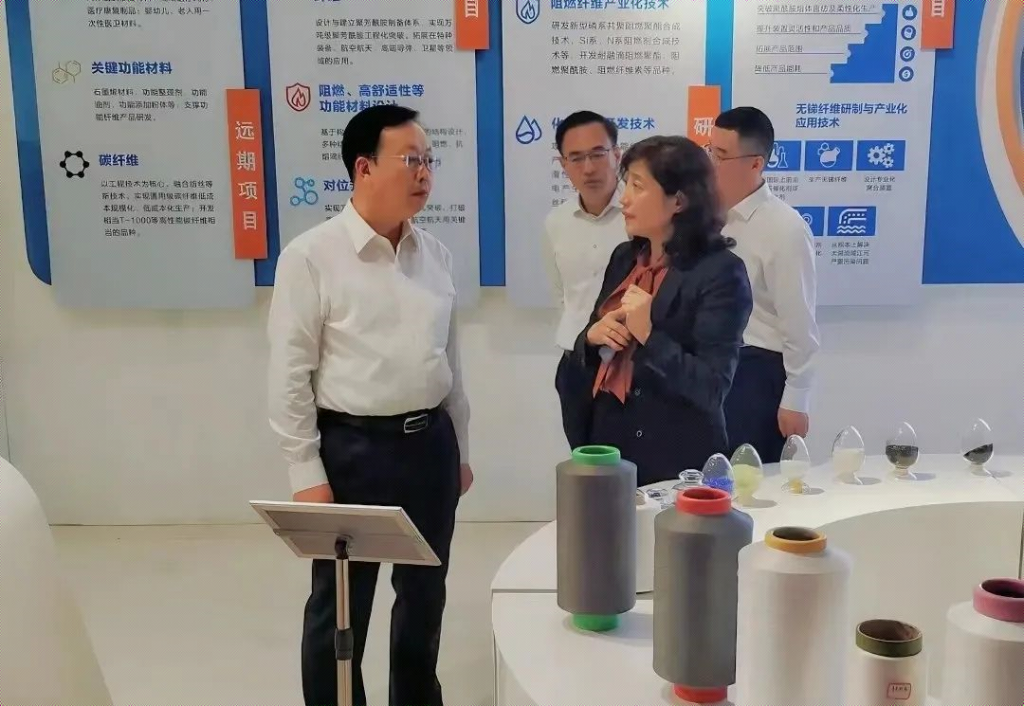 Jia Shirui and his delegation first came to the pilot scale test base for investigation, listened to the introduction of the base, observed and understood the production situation of the pilot scale test base on site, and understood the breakthrough, transformation and application of the key technology of "antimony free fiber". At present, the pilot scale test base has completed the pilot scale test certificate of antimony free fiber and flame retardant fiber, with annual production310000 tons of flame retardant and functional fiber.